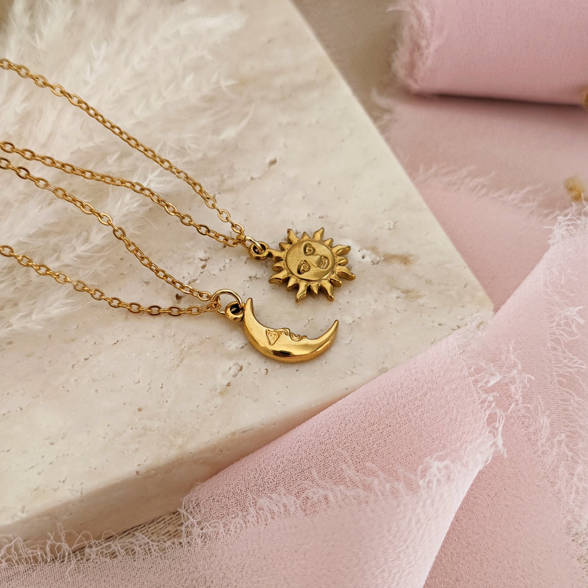 trending ! "Sun Moon" necklaces with Sun and Moon for couples, gold Set (Sun Moon) 40 cm