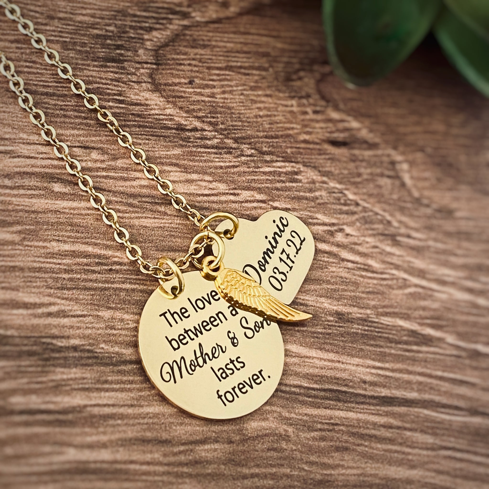 "The Love between a Mother Son lasts Forever" Mother's Memorial Necklace 1